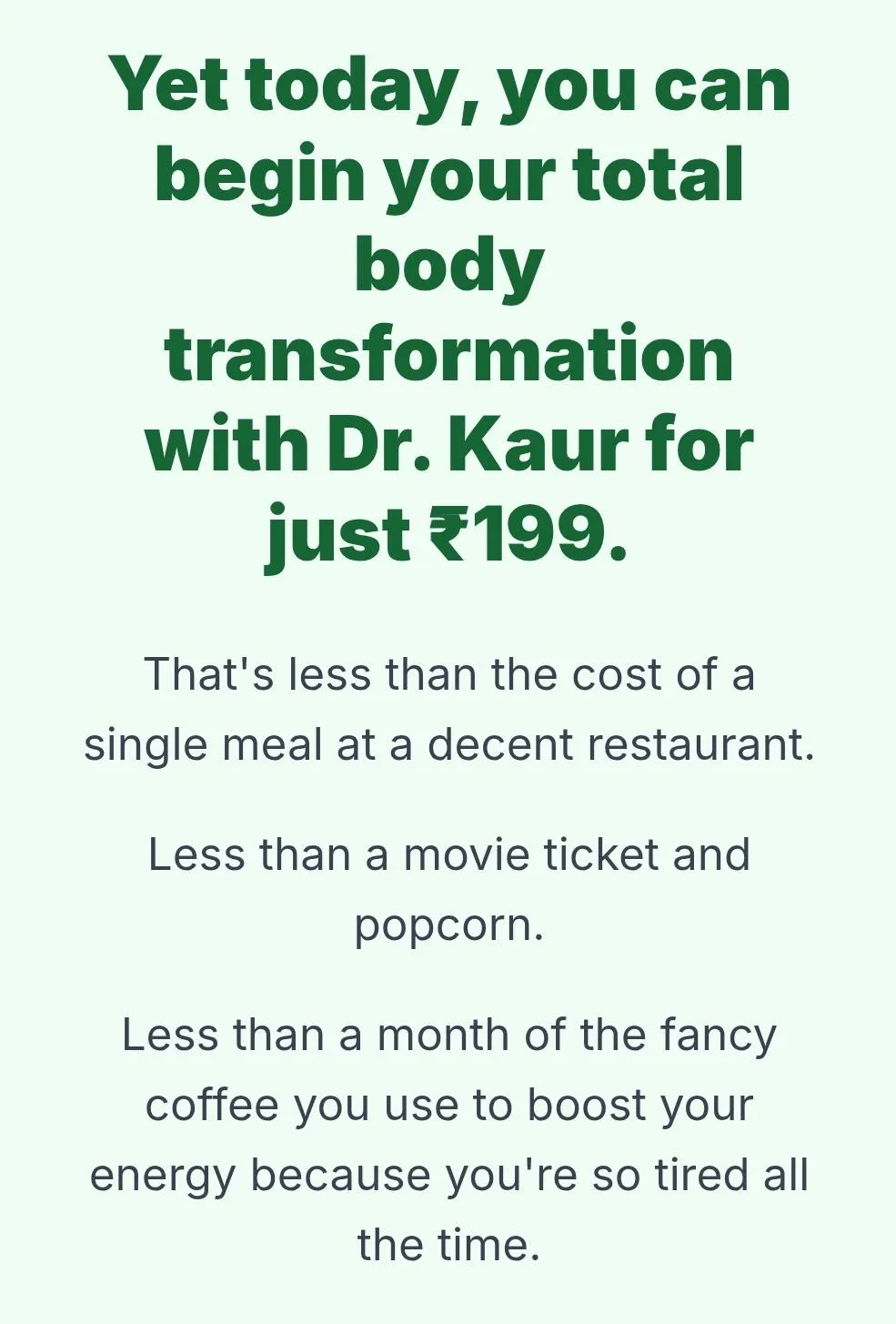 A: That's exactly why we offer the heavily discounted initial consultation. It gives you the chance to meet Dr. Kaur, discuss your specific situation, experience the treatment firsthand, and then make an informed decision about whether this approach feels right for you. With our satisfaction guarantee, you have nothing to lose except the weight that's been holding you back. The women whose testimonials you read had the same questions and concerns you do now—they simply took that first step of booking the consultation. That one decision changed everything for them.